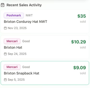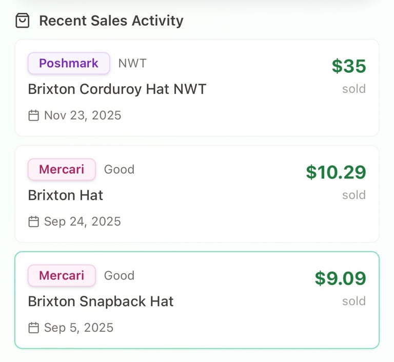 Recent Sales Across Multiple Platforms